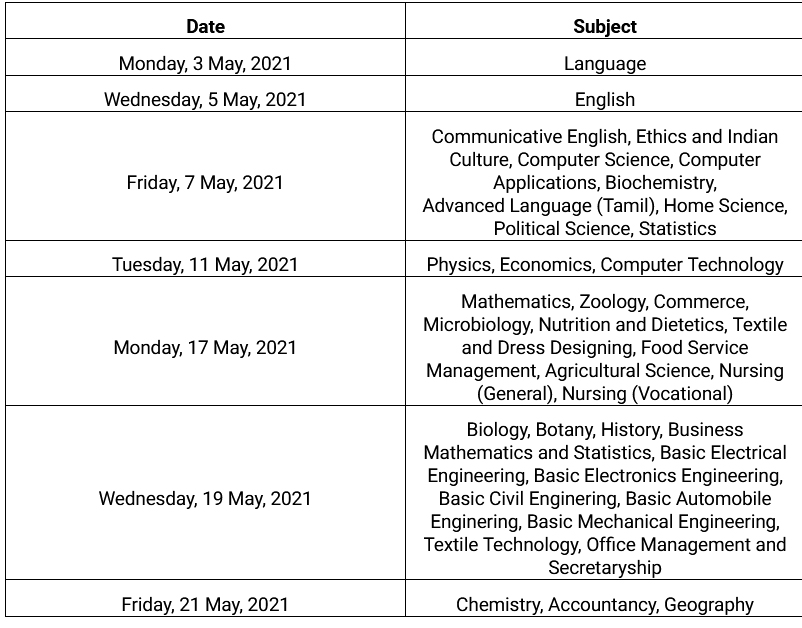 The exams will begin on May 3 and conclude on May 21. The schedule for the TN 12th exam 2021 was announced by the Directorate of Government examination on Wednesday.