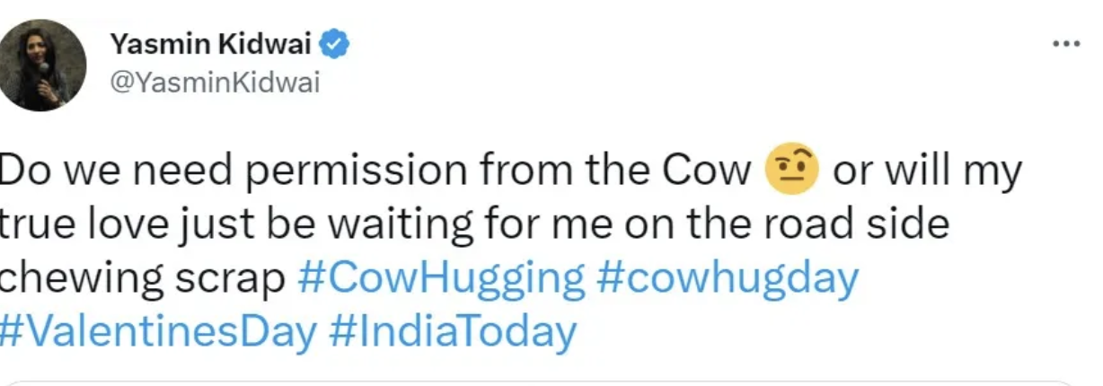 Another user called Yasmin Kidwai tweeted, " do we need permission from the Cow or will my true love just be waiting for me on the road side.