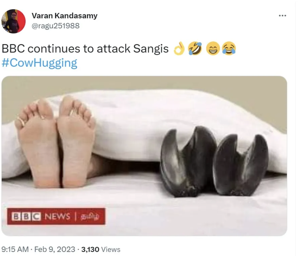 Another made a meme and called it Cowtanic, while another user share an image of beef curry to mock the initiative by the government. One more user, Varan Kandasamy shared an image of an insinuate person sleeping next to a cow.