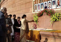 Bloody memories of 2001 Parliament attack came alive on Saturday, Dec 13 at a function to mark the martyrdom of the security personnel who laid down their lives to save the symbol of democracy. Somnath Chatterjee, the Lok Sabha Speaker, Prime Minister Manmohan Singh, L K Advani, leader of Opposition, UPA Chairperson Sonia Gandhi and other senior leaders of various political parties offered floral tributes.