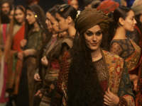 Sabyasachi's collection was like a storm of Indian traditional designs. His collection included the Khadi saris and salwar kameez with a tribal touch.