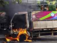 Mumbai, Jun 9: The Shiv Sena activists on Monday, Jun 8 got on to the streets protesting against the hike in Reliance's power prices. The protesters attacked Reliance Energy head office, pelted stones at the police and torched at least four vehicles.
