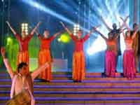Five female dancers and three males performed a 15-minute extract from the Bollywood Steps inspired by Indian films which was a show conceptualised by the founders Ajay Chhabra and his wife Simmy Gupta.