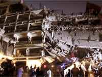 The explosion almost destroyed the building and clouds of smoke emitted out of the building hours after the blast.