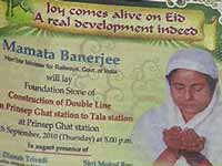 The Railway ad for the Sep 9 foundation laying ceremony of a double line from Prinsep Ghat station to Tata station features a picture of Mamata Banerjee wearing a hijab and offering Namaz.