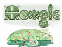 Google users in United States can see a nice St. Patrick's Day doodle, while the Irish Google homepage boasts another doodle. Both these doodle are coloured in green as it's tradition to wear green dress on St. Patrick's Day.