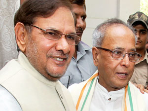 Pranab meets Sharad Yadav to thank him for JD-U support