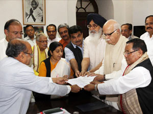 Sangma was accompanied by Odisha Chief Minister Naveen Patnaik and BJP veteran LK Advani. He is backed by BJP and some of its NDA allies.