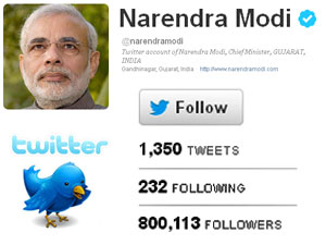 | 13th June 2012 | Narendra Modi has 700,000 followers on Twitter. |
