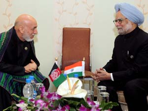 Singh and Karzai reviewed the status of bilateral ties and the importance the two countries attach to the furthering of robust relations in a meeting which lasted for nearly half-an-hour, Foreign Secretary Ranjan Mathai said. |