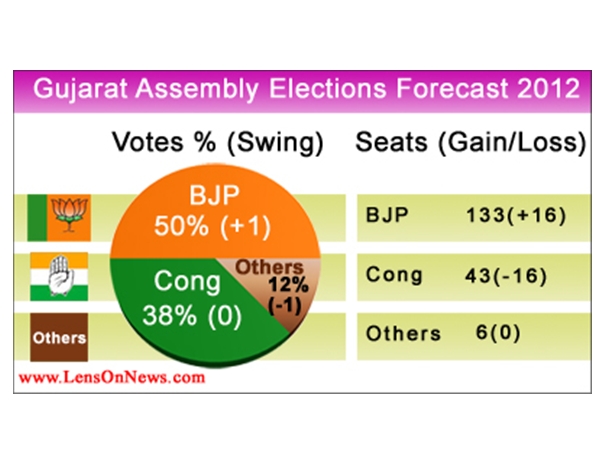 Recently, LensOnNews conducted a survey among a representative sample of 7294 voters spread over 52 assembly constituencies across the state finds that the BJP is set to garner 50 per cent of the vote in the coming election and that this would translate into a tally of 133 seats, a share of more than 70 per cent in the 182-seat assembly.