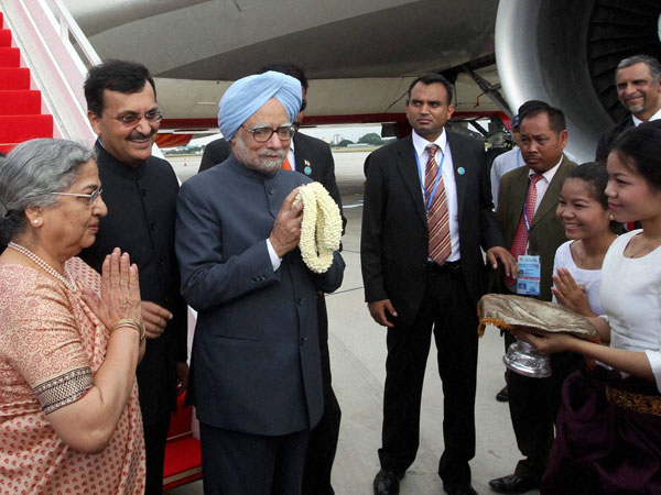 Cambodia, Nov 20: Indian Prime Minister Manmohan Singh along with wife Gursharan Kaur reached Cambodia to attend Association of Southeast Asian Nation (ASEAN) meet where political leaders from different parts of the world arrived.