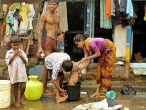 It says 74 percent of slum households use tap as the main source of drinking water with about 20 percent using hand pump or tube well.