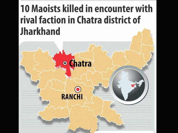 Ranchi, Mar 28: An aide of a top-ranking Maoist leader who booby-trapped the bodies of dead CRPF jawans after the encounter at Latehar in Jan 2013 was among the ten ultras killed in a gunfight between rival groups of Maoists in Chatra district on Wednesday night.