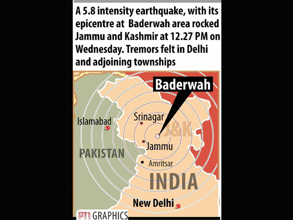 As per the initial reports, over 150 buildings, including schools, hospital, government buildings, private houses, suffered partial damages in Bhaderwah belt, while 220 houses were cracked and suffered minor damages in Thanala village on Bhaderwah-Chamba border belt due to the tremors.