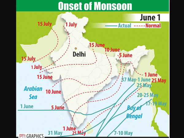 Meanwhile, the monsoon is expected to advance to parts of Tamil Nadu and drought-hit states of Karnataka and Andhra Pradesh over the next two days.