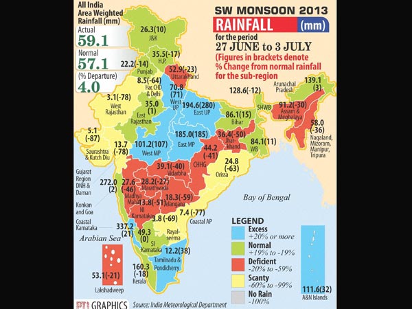 The rainfall fell below normal between June 28 and July 2 but it again picked up over the last couple of days. Heavy rainfall is likely in the state till this weekend, the sources added.