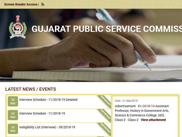 Gandhinagar/Ahmedabad, Mar 21: Gujarat Public Service Commission (GPSC) has invited application from eligible candidates for the recruitment 1162 Assistant Professor Assistant Engineer and various other posts. The candidate who is looking for following post can apply from 18.03.2019 and before 18.04.2019.