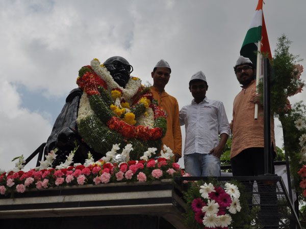 AAP members garland a statue of Mahatma Gandhi on his 144th birth anniversary on October 2, 2013.