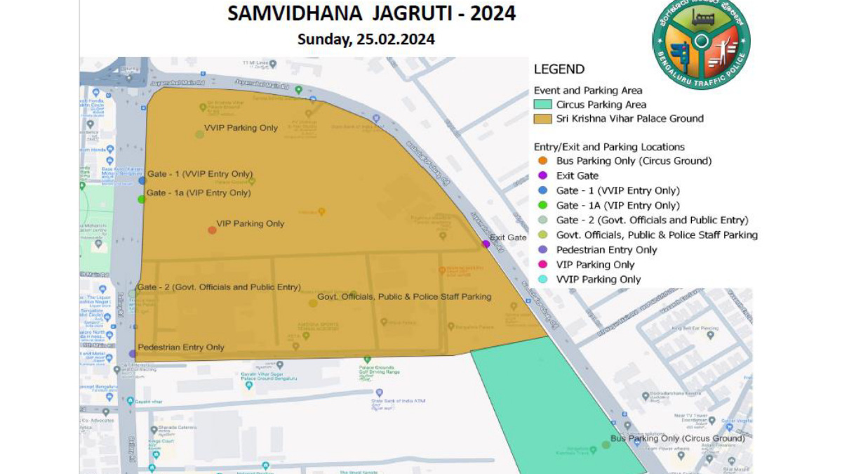 Bengaluru Traffic Police has issued a traffic advisory in view of a 'Constitution and Unity of India' programme on Sunday.