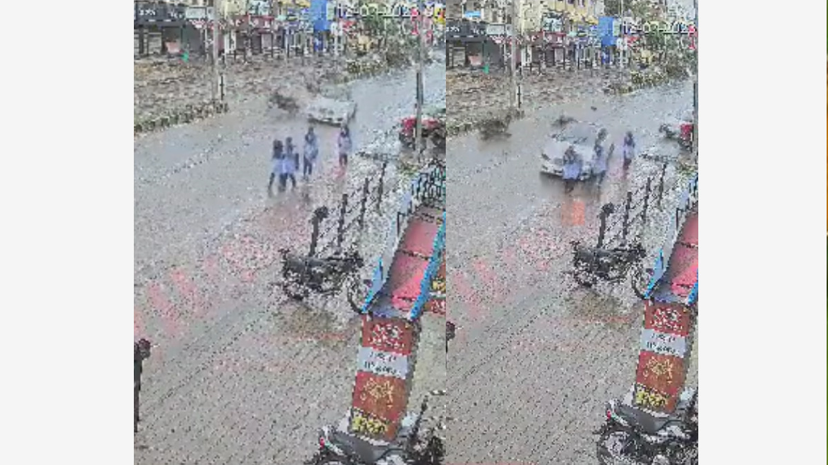 In a shocking hit-and-run incident captured by a CCTV camera, a speeding car collided with a bike rider and pedestrians in Raichur district of Karnataka. The accident took place on July 18 while it was drizzling, and the footage of the incident surfaced on social media on Wednesday.