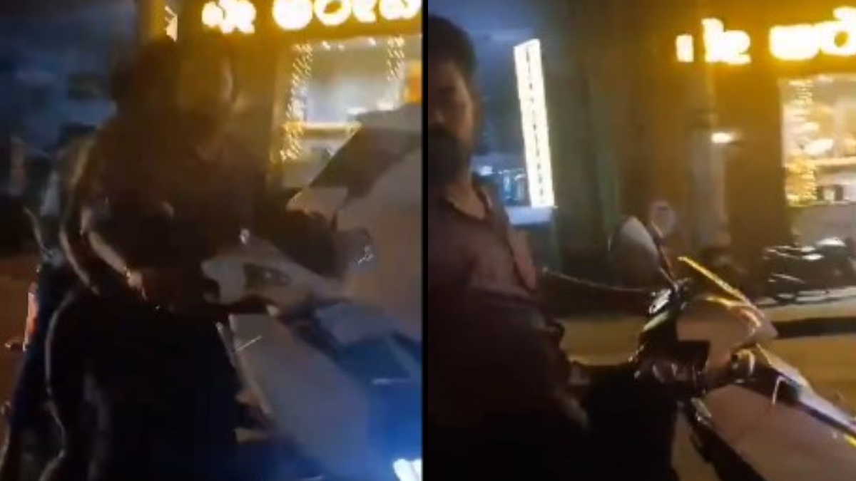 In the video, three persons on a two-wheeler can be seen chasing a woman who is driving and recording the incident. They are seen knocking on the door and attempting to open it while saying something to her. The woman appears worried and panics over her safety.