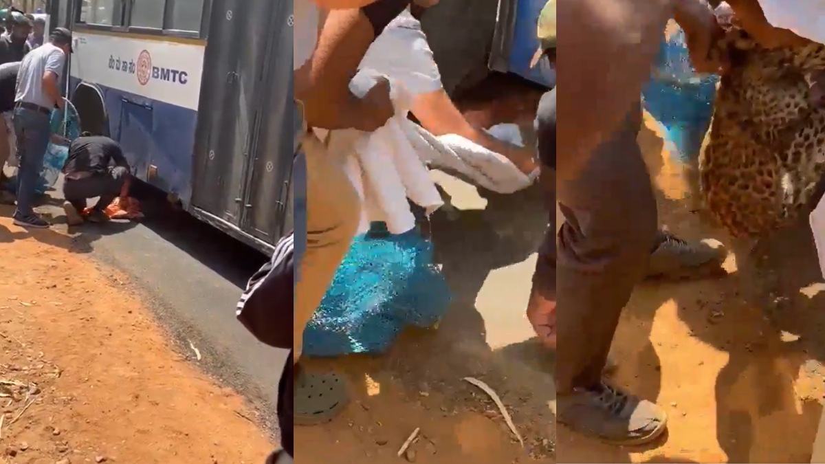 Terrified Leopard Cub Takes Shelter Under Bus Near Turahalli Forest In Bengaluru, WATCH VIDEO