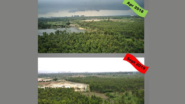 One Twitter user, A G Lakshmanan wrote on his timeline, "look how the Bhoganahalli lake opposite our building has been destroyed in 1 year. Lake water pumped out for desilting and work stopped mid-way. Now people are using chainsaws to cut the trees around!"