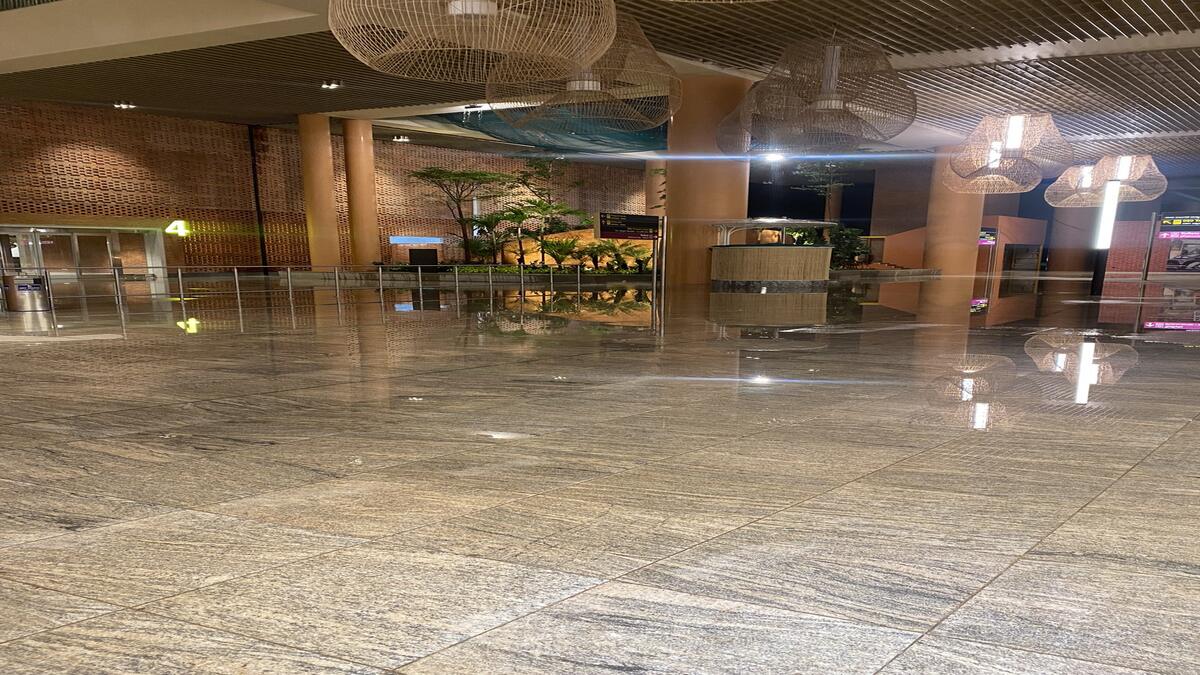 The much-hyped terminal, built at the cost of around Rs 5,000 crore witnessed wet floors, causing inconvenience to passengers.