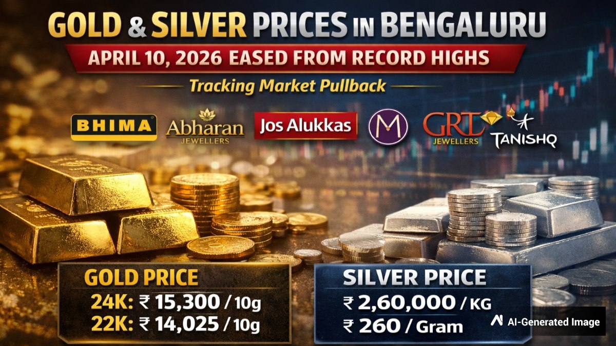 Gold and silver prices in Bengaluru on April 10, 2026 eased from recent record highs on Friday, April 10, 2026, tracking a broader pullback in global bullion markets. While local rates saw a daily climb, the overarching trend reflects a market catching its breath after a period of intense volatility.