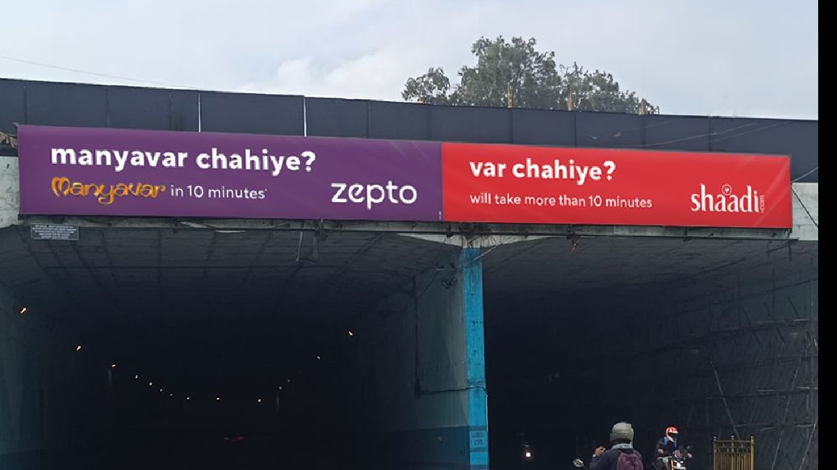 The ad featured a question that has long been a part of Indian weddings: "Manyavar chahiye? (Want Manyavar?)" Zepto cleverly tied the question to its promise of swift delivery, highlighting that it could bring the perfect wedding wear to your doorstep in just 10 minutes.