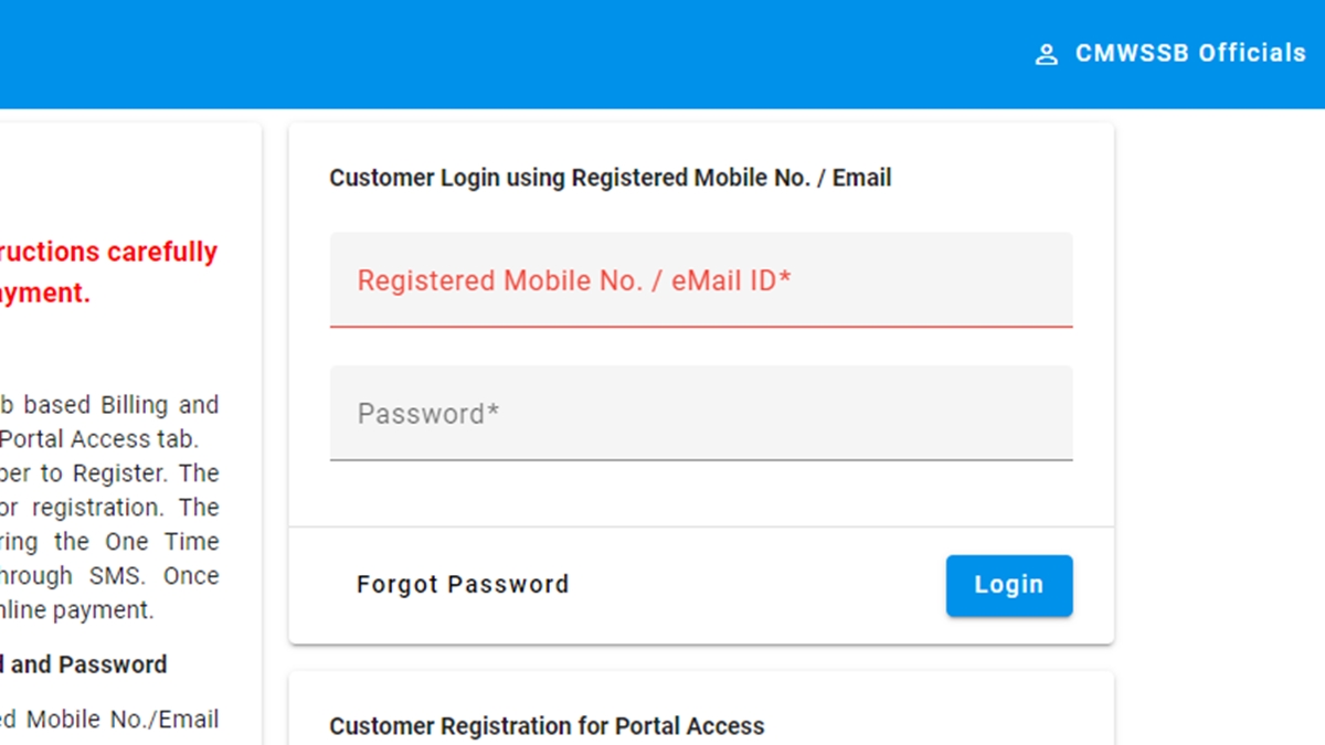 Consumers can pay their dues easily by logging into the CMWSSB portal at this link. The board has introduced a user-friendly system to register for the web-based billing and collection service. Here's a step-by-step guide to the registration and payment process: