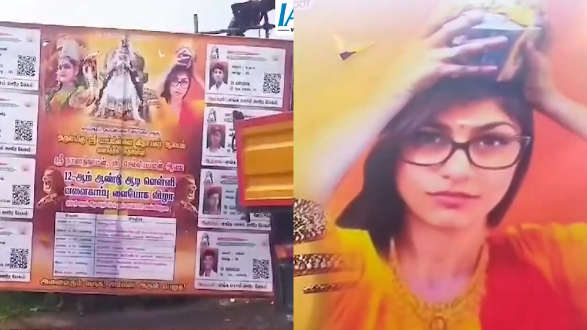 A hoarding in Tamil Nadu's Kuruvimalai for the Aadi Perukku festival sparked controversy after it featured an image of former adult film star Mia Khalifa carrying a traditional milk vessel.