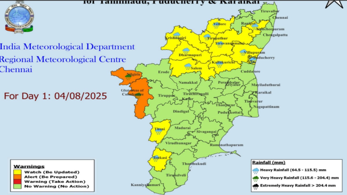 Tamil Nadu Weather: Heavy Rain Alerts In 13 Districts, Orange Alert In Nilgiris, Coimbatore Ghats