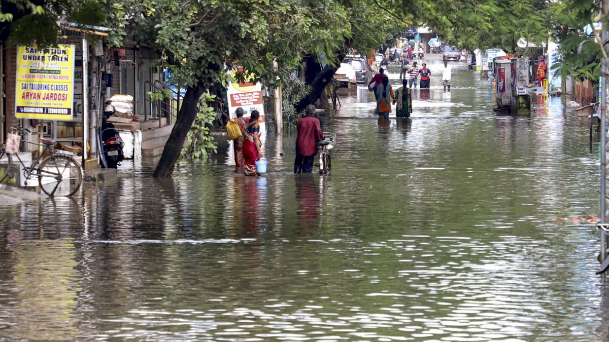 Social media visuals showcased the relentless rain pounding Chennai and other parts of Tamil Nadu, depicting individuals navigating through inundated streets donning raincoats or wielding umbrellas.
