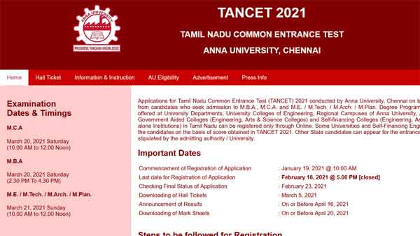 Candidates who have applied for TANCET 2021 are advised to visit the official website and download the same.