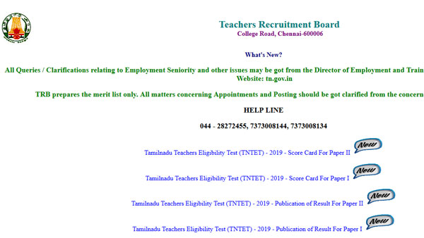 The board it may be recalled had released the TN TET results 2019 results for paper-I. The score cards have been released for more than 1.60 lakh candidates. The result is available on www.trb.tn.nic.in.