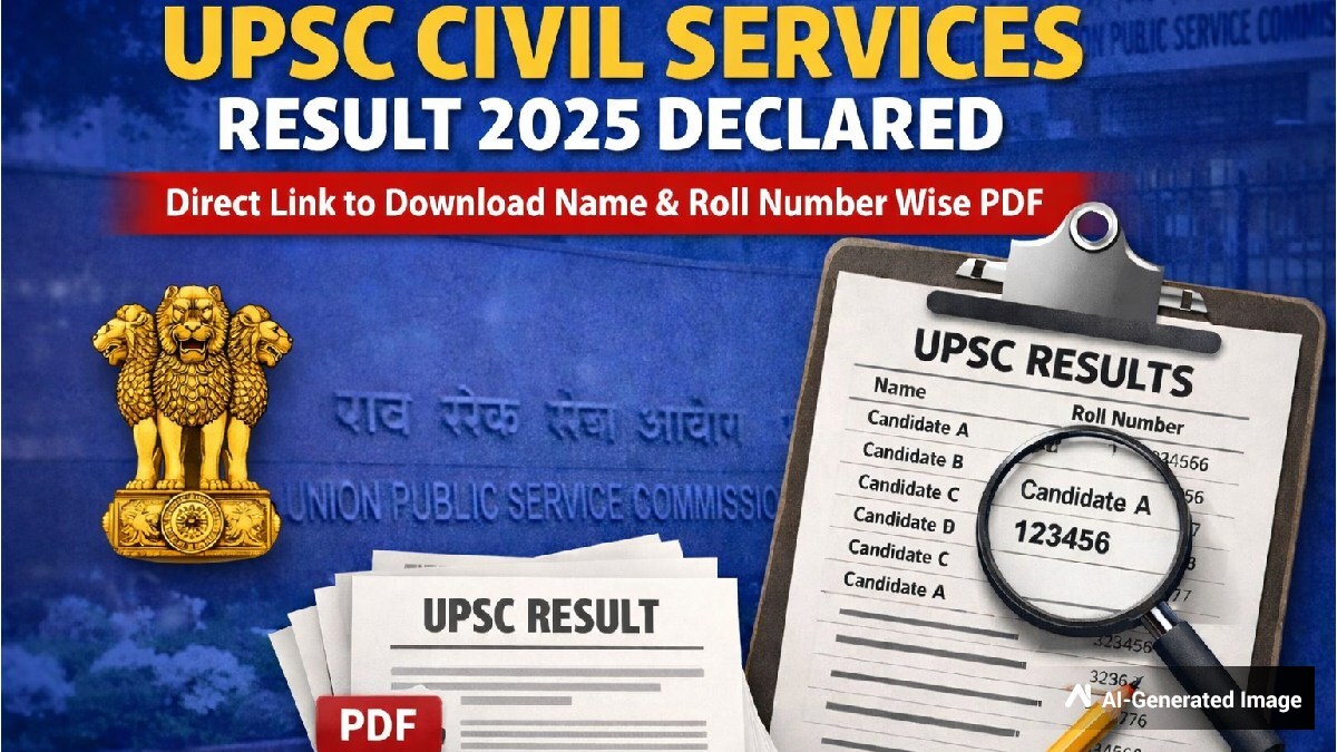 The Union Public Service Commission (UPSC) has announced the final results of the Civil Services Examination (CSE) 2025 on 6 March 2026. The result has been released on the official website, upsc.gov.in, in PDF format containing the roll numbers and names of candidates who successfully cleared all stages of the examination, including the written test and the Personality Test.