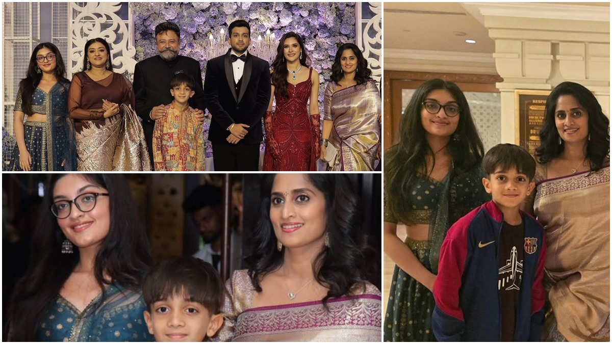Notably, superstar Ajith Kumar was absent from the grand occasion. However, his wife Shalini and their children, Anoushka and Aadvik, attended the reception, captivating everyone with their presence. Pictures of the family have since gone viral on social media, garnering love from fans.