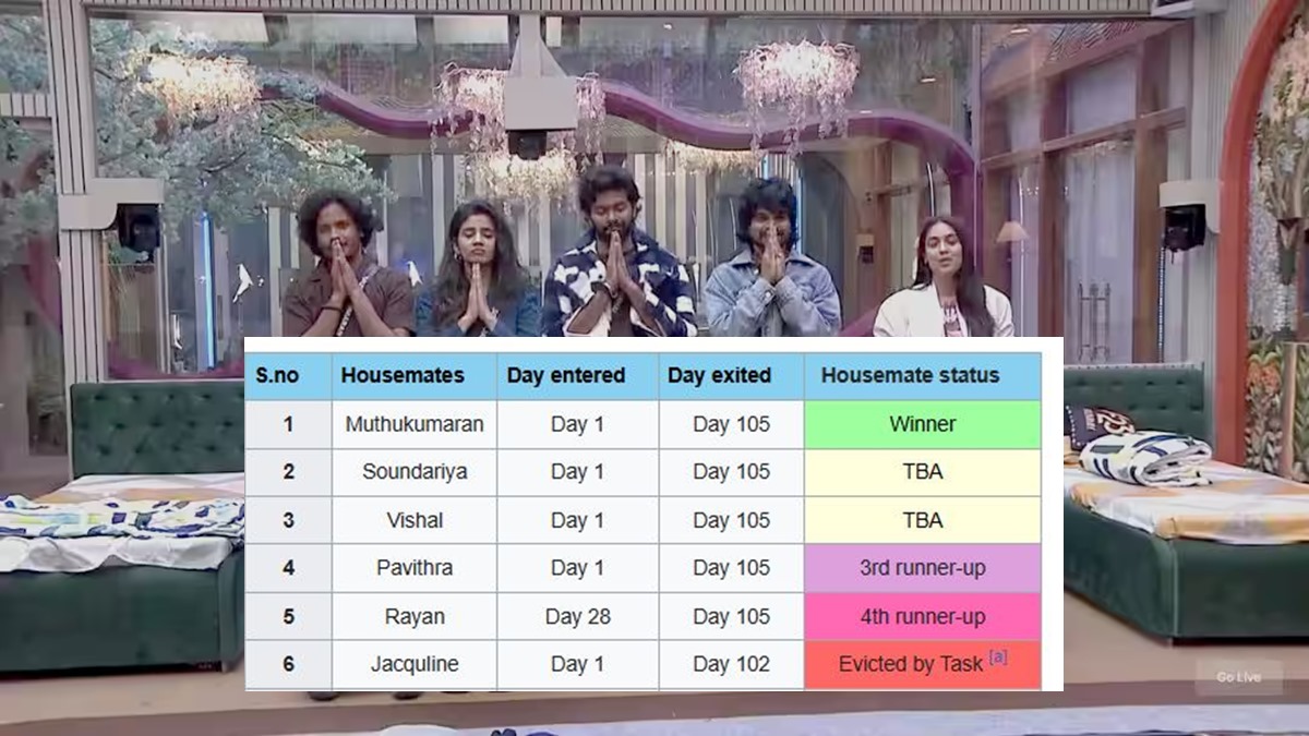 In an apparent slip, the Wikipedia page lists Muthukumaran as the winner, while naming Pavithran as the third runner-up and Rayan as the fourth runner-up. Interestingly, the details of the first and second runner-ups remain marked as "TBA," adding to the mystery surrounding the finale.