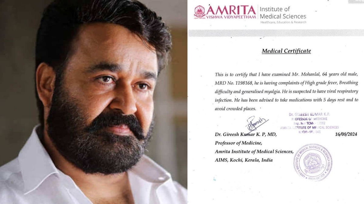 According to the medical bulletin, Mohanlal was admitted on August 16 due to high fever, breathing difficulties, and generalised myalgia. Doctors suspect he has a viral respiratory infection and have recommended medications along with five days of rest. He has also been advised to avoid crowded places during this period.