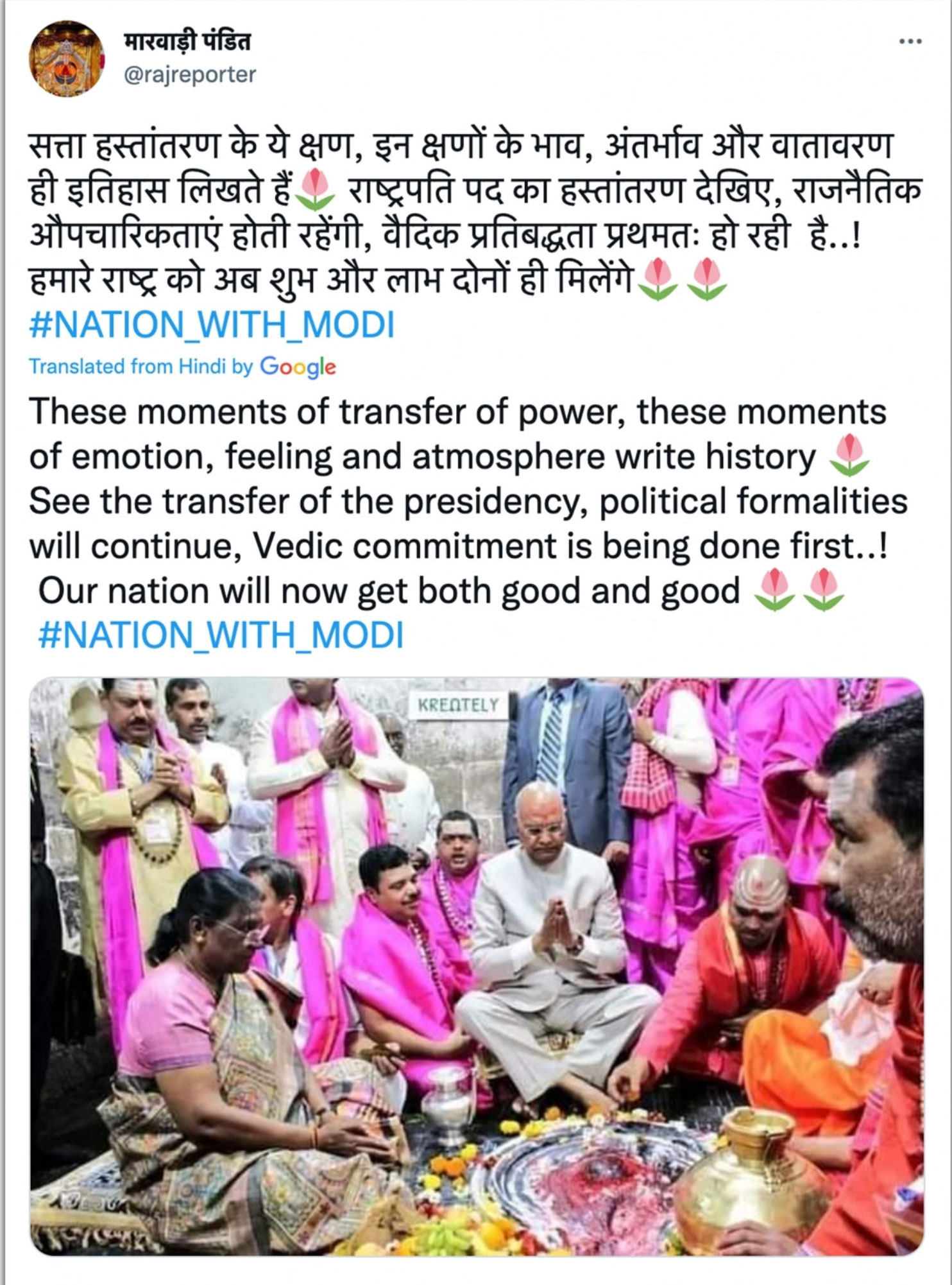 Hence this makes it clear that the two year old photo of Kovind and Murmu is being shared with the claim that the rituals took place on July 25 the day Draupadi Murmu was sworn in as President of India.