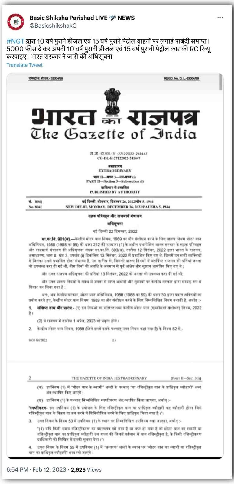 The government's notification which has gone viral is from December 2022. It speaks about the rules for dealers or companies involved in the sake of second-hand vehicles. The order was issued to fix a loophole which was being used by car dealers to sell stolen cars.