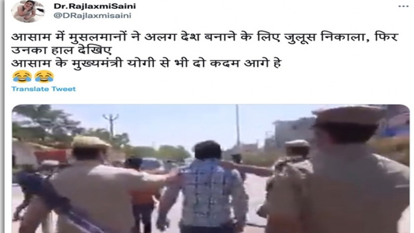 Twitter and Facebook users shared the video with the claim that the Muslims organised a march in Assam demanding that they be granted a separate country as a result of which the police resorted to beating them with 'lathis.'