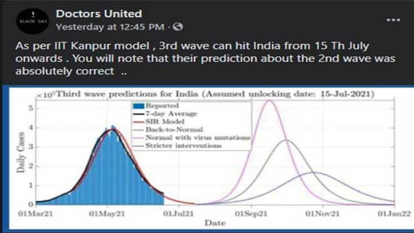 New Delhi, June 25: A post on Facebook has gone viral stating that the third wave of COVID-19 will hit India by July 15. The post reads, 'as per IIT Kanpur Model, 3rd wave can hit India from July 15 onwards. You will note their prediction about the 2nd wave was absolutely correct,' the post says along with a graph.