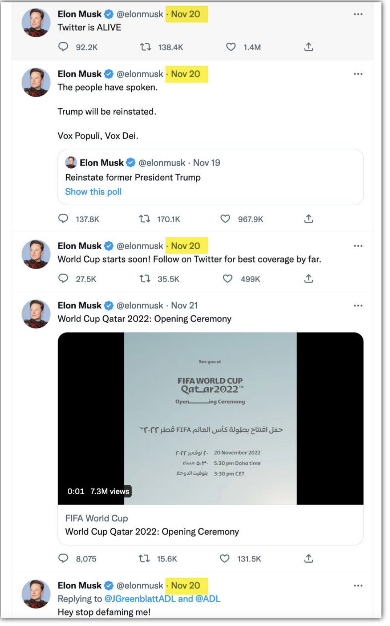 Musk's tweets from November 20 stated that, 'Twitter is alive,' The people have spoken, Trump will be reinstated among others. After digging deeper, we found a tweet from Musk which was posted on May 22. In response to a Twitter user, Musk had written, 'this would be a super bad idea, since stocks can swing wildly from one day to the next, eg Snapchat dropping 43%. Tesla is ~40% below ATH! However, eliminating estate tax dodges like GRATs would be good, since the probability of kids being effective stewards of capital is lower.'