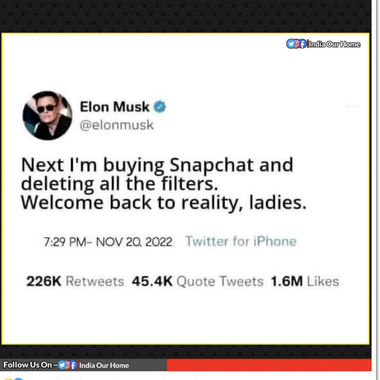 Hence it become completely clear that the viral tweet claiming that Musk is all set to buy Snapchat is fake.