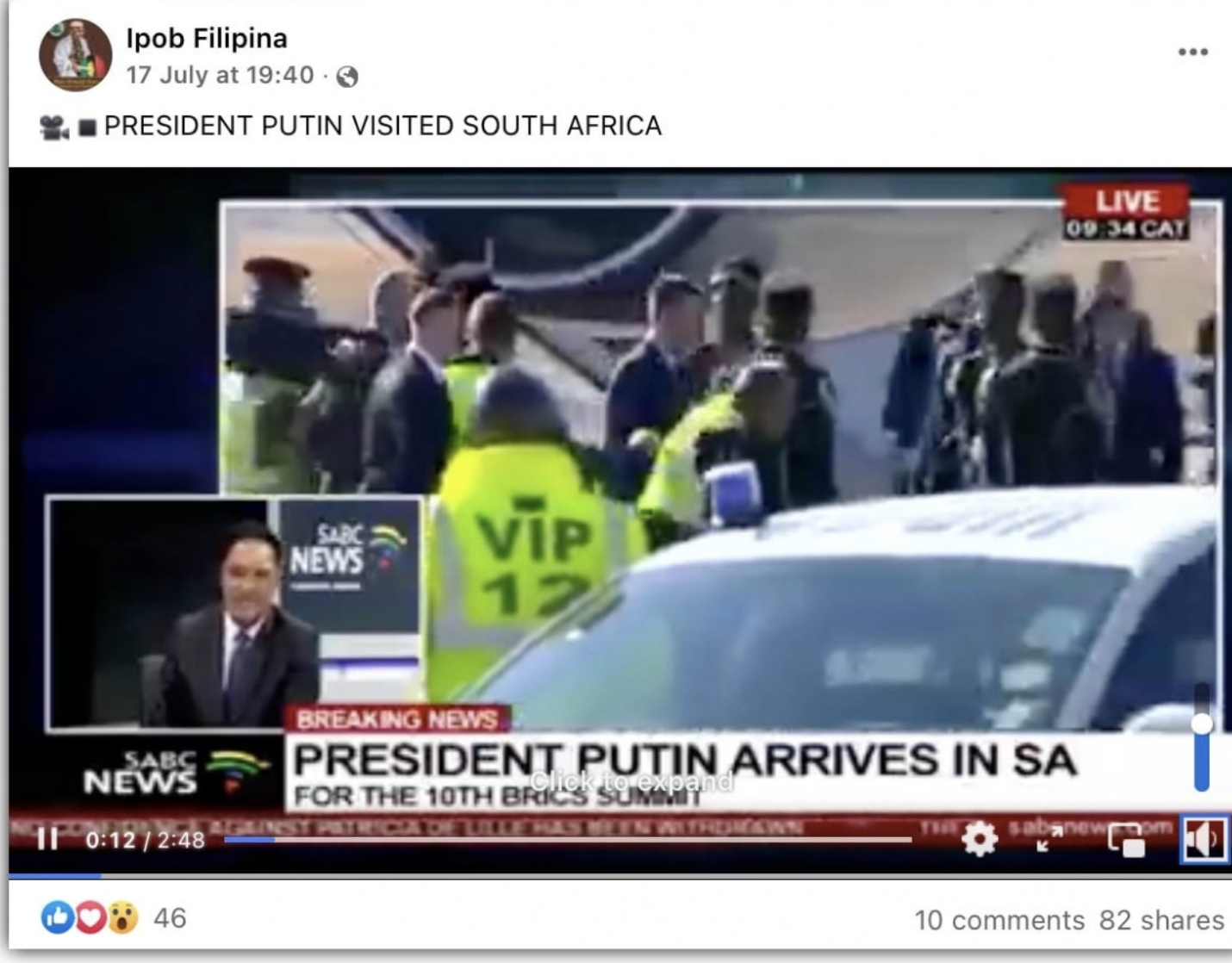 The SABC channel is owned by the South African Broadcasting Corporation. The 3 minute clip was uploaded on July 26 2018. Moreover it is also confirmed that Putin had not travelled to Africa recently. HIs foreign minister has however toured several countries of the continent in recent times.