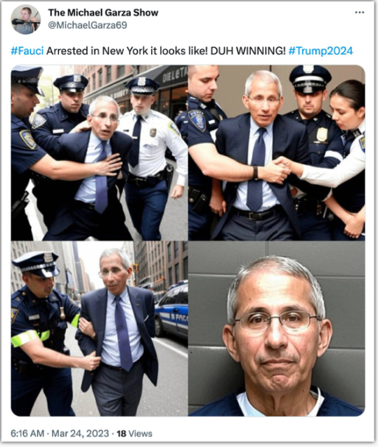 A tweet read, "Fauci arrested in New York. It looks like DUH winning Trump 2024."