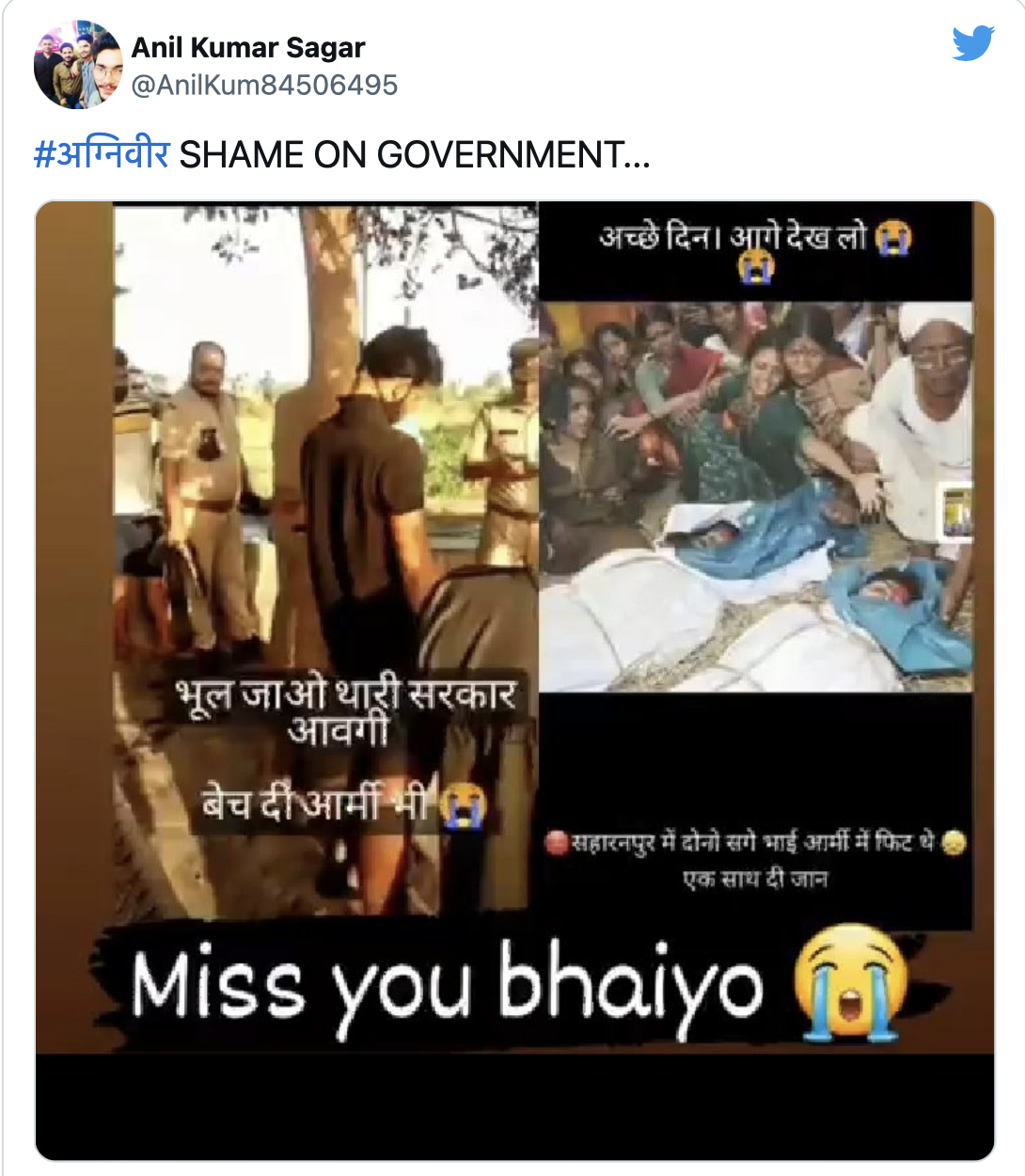 One such image that has gone viral shows visuals of young men who have allegedly killed themselves over the Agnipath scheme.
